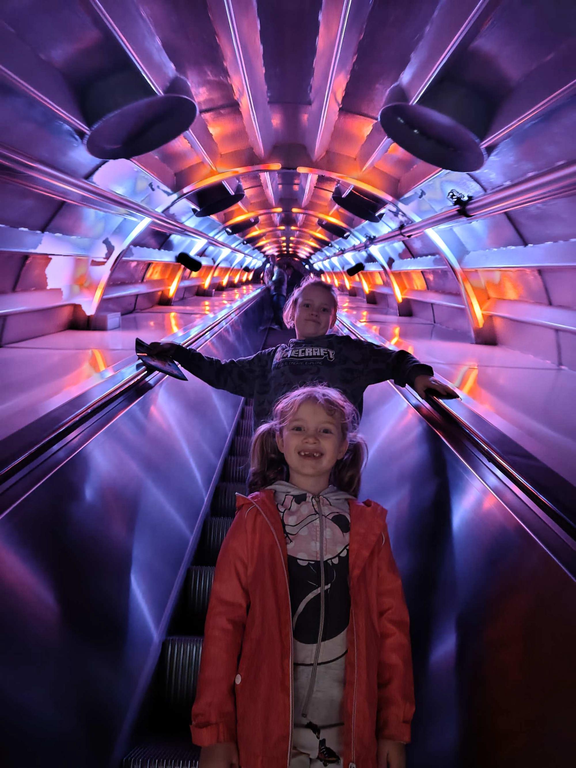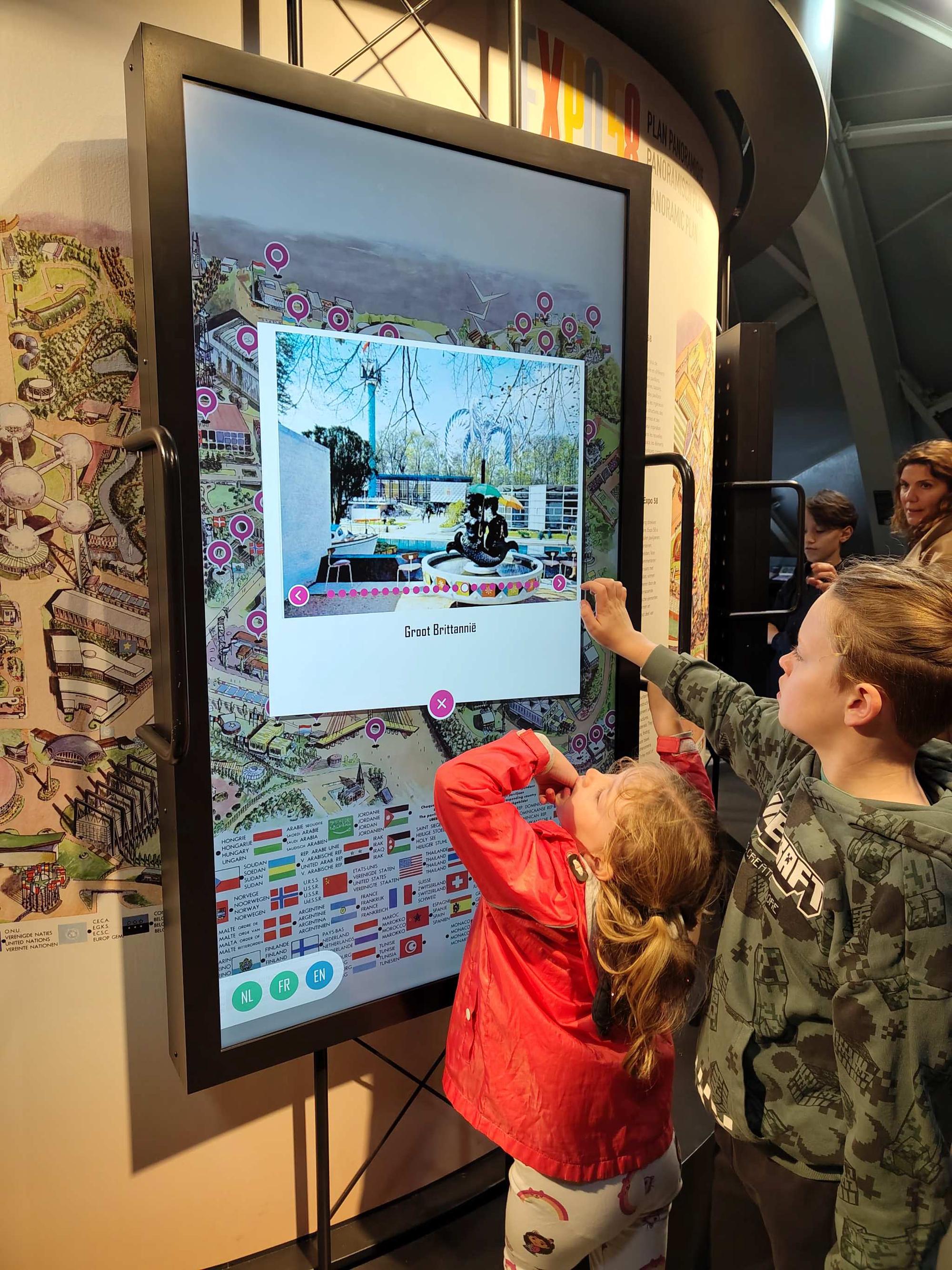 After a couple of hours we headed back to the atonium which thankfully no longer had a huge queue. Out of all the 'balls' only 4 are open to visitors. The first is now a museum all about the 1958 world exposition and how the building came to be, including alternative designs. The next 2 house a temporary exhibition which currently is an immersive sound and light show which both kids really enjoyed.