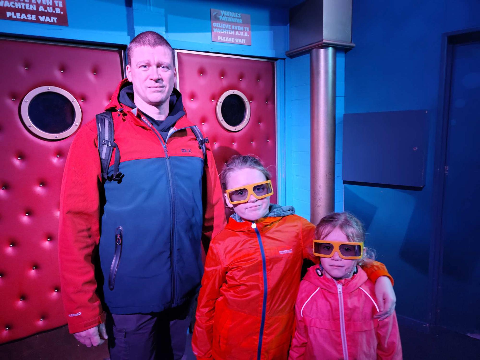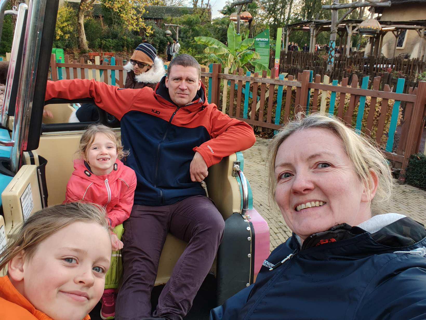 This park definitely has more for the older kids and there are 5 rides that Liliya is too small for but it's also bigger than Plopsland so don't think we'll run out of things for her. First up and the kids want to get there adrenaline pumping so we head for the wooden coaster. We've been so lucky with theme parks up to this point and managed to avoid the crowds but it's also the start of the school holidays for the locals so we've got a 40 min wait in the rain and there's already talk of being hungry!