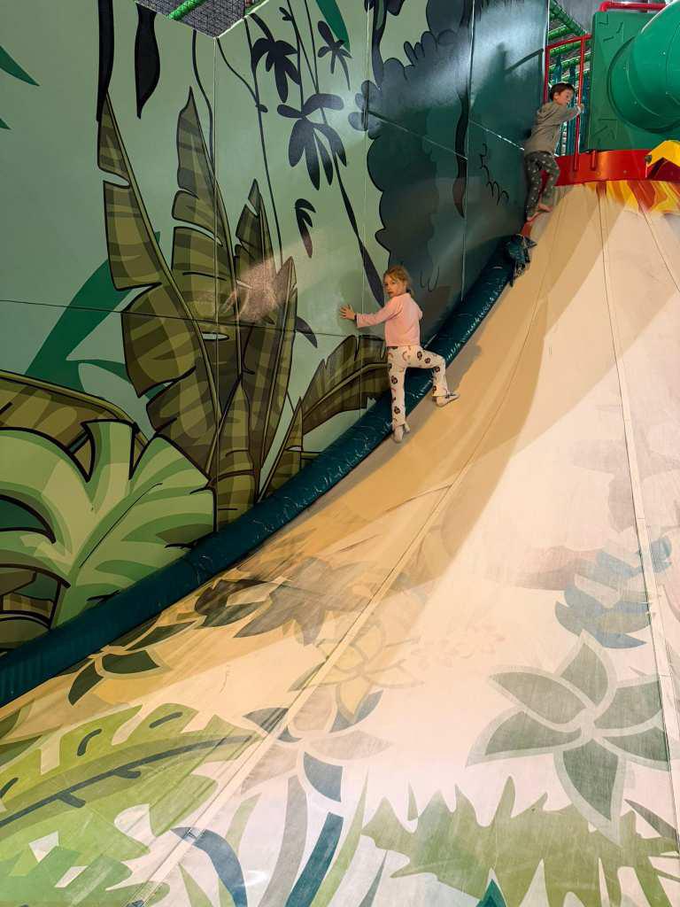Other than waking in the night to some pretty strange animal noises we all survived. We've got a 1hr45 min drive to the centre parks where we'll spend our last day. Al had told me it was in the Netherlands but it turns out it's actually in Belgium so having told people we're off to 3 countries in 4 days it turns out everything had been in Belgium, oops. After a few long days and lots of steps a more relaxing pool day should do us all good. First of all though the kids make use of the giant soft play whilst we get to chill and catch up on a bit of life admin. After about 90 mins we attempt to get them so we can head to the pool but we can't find Robert anywhere. After a good 10 mins of all 3 of us looking it turns out he was in the baby area building a den and playing peekaboo with a kid.