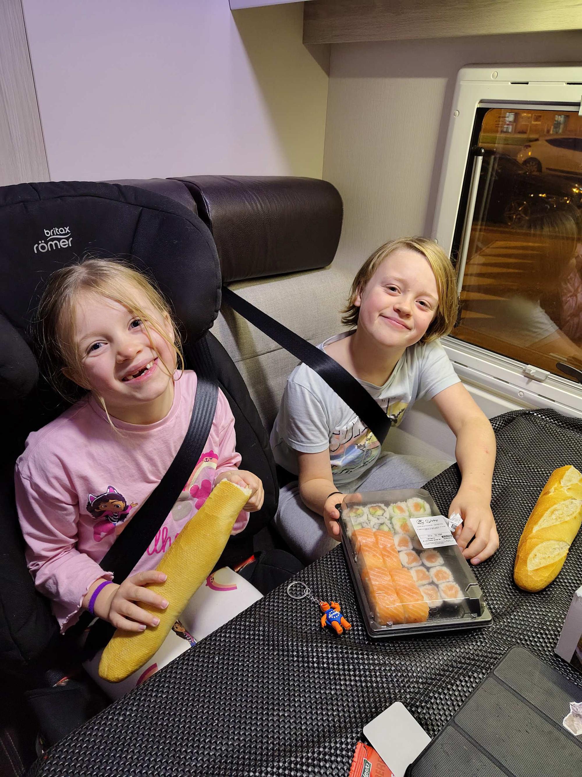 With just under an hour left it looked like we'd have time for one more big ride but unfortunately unlike other parks we've been to where they close the queue at the park close time this one seems to work out the queue length and close it so the last ride should be at closing time. That meant we missed the biggest ride in the park but we've said we'll come back. Liliya wanted the drop ride again but we were a couple of minutes too late for that as well but we did manage to be the very last people on the old mine coaster. It was 10pm and the kids were only just realising they had missed out on tea so we threw a whole load of snacks at them back in the van then after 30 mins we were parked in a forest for our overnight stop. Not at all creepy after the day we've just had honestly 😬.