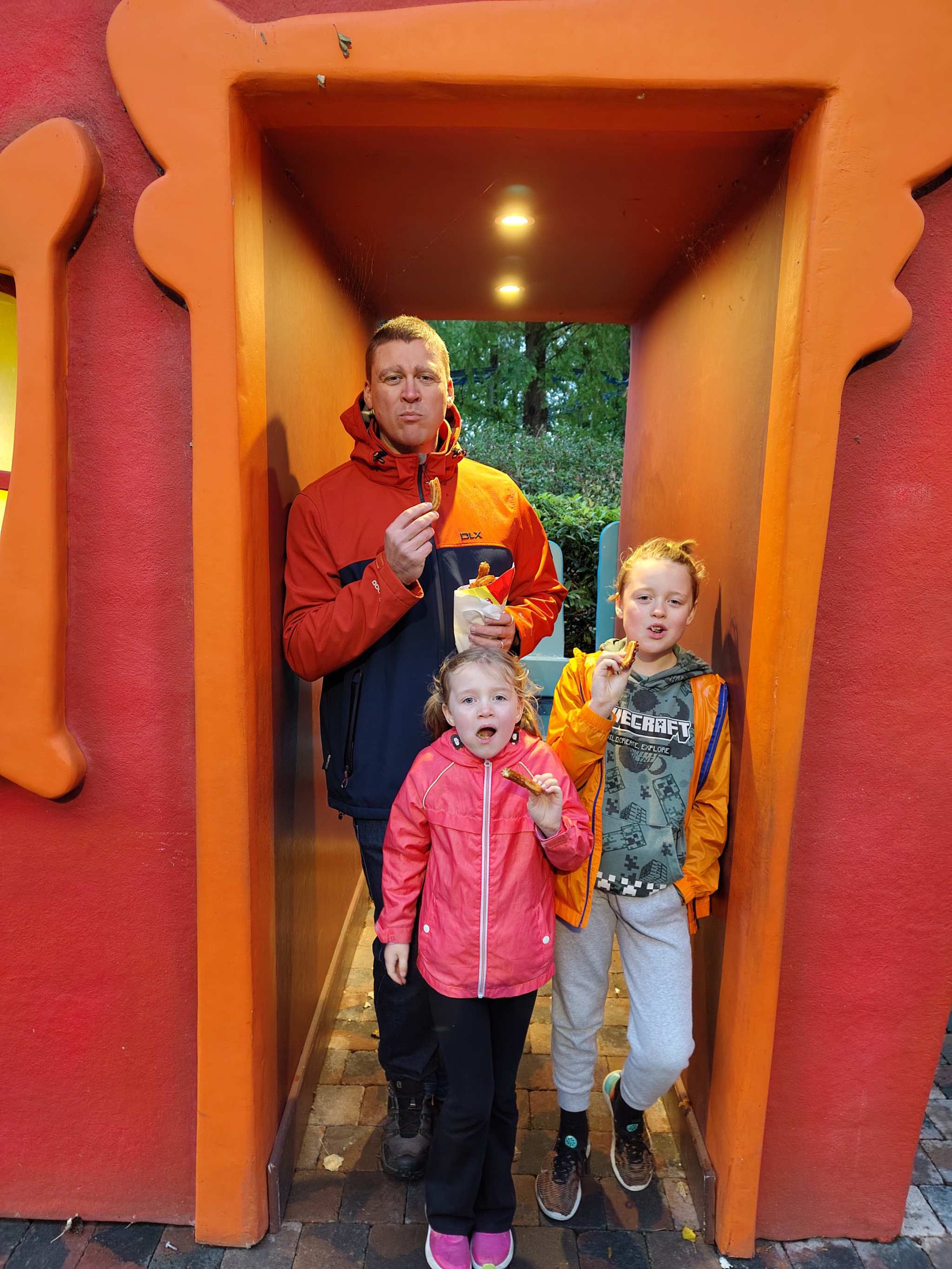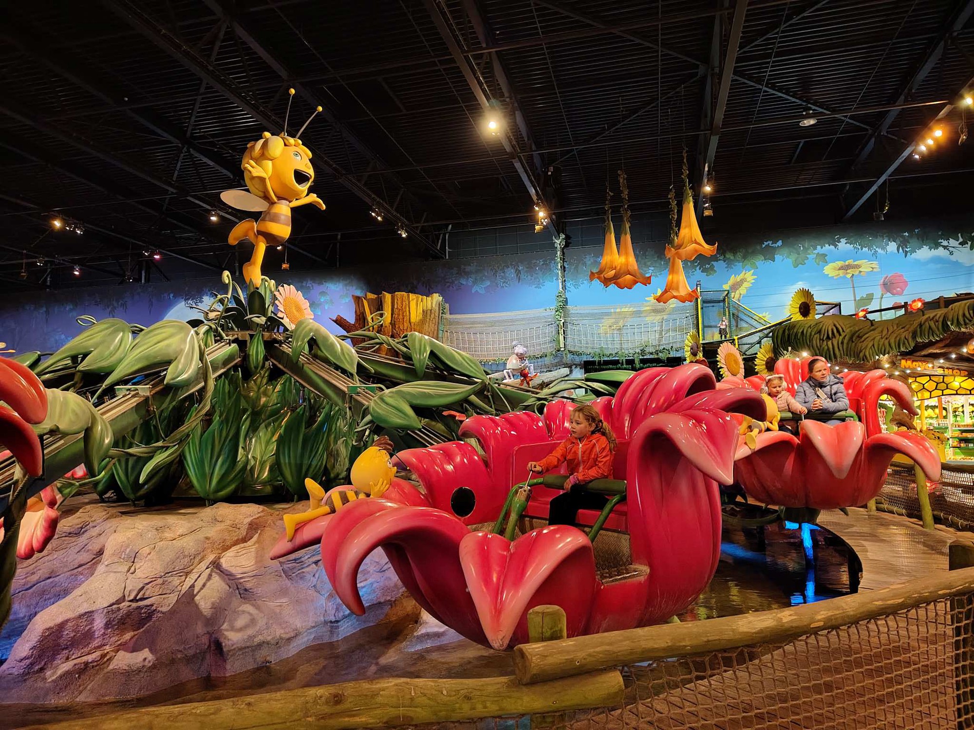 We rocked up in Calais feeling a little grotty as the crossing had been rather rough but thankfully we only had 40 mins until we reached our supermarket stop. The last time we stayed here was 2 years ago on the way to Denmark and we discovered the moho had a terrible damp issue. With tonight's weather we'll certainly find out if the repairs have worked as were caught in one heck of a storm. Luckily it doesn't wake the kids although I certainly remember hearing the wind and rain in the night. It was still horrific when we all woke up the next day and I even googled how fast does the wind need to be to blow over a moho, turns out 50mph could do it and right now the forecast says we've got gusts up to 37mph so we should be ok. I am slightly concerned that things might be closed at the themepark but after we've had our breakfast and got dressed we seem to have got through the other side of the storm. We're only 10 minutes away from Plopsland which actually happens to be in Belgium and not France as I originally thought. I had told Robert we could both practice our French but it turns out we're in the Flemish part and although things in the park are dual signed the majority of the voices are Flemish. We've been given premium parking right at the front of the park with the coaches which turns out to be rather handy as we decide not to lug our lunch around and instead we'll just come back to the van once we're hungry.