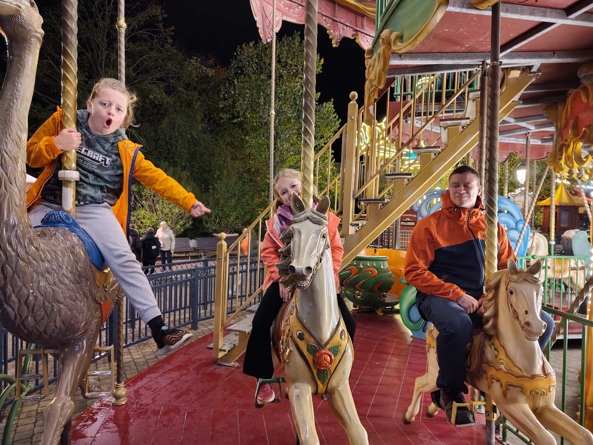There's still time for some tame rides in the funfair section so we all enjoy the carousel and the kids go on the dodgems.